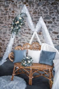 Je vous accompagne dans la location de mobilier et décoration de mariage afin de créer un décor harmonieux, élégant et à votre image.